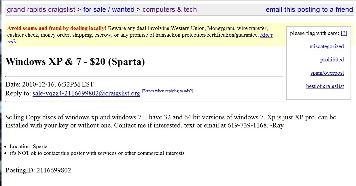 Selling Copy discs of windows xp and windows 7. I have 32 and 64 bit versions of windows 7. Xp is just XP pro. can be installed with your key or without one. Contact me if interested. text or email at 619-***-1168. -Ray