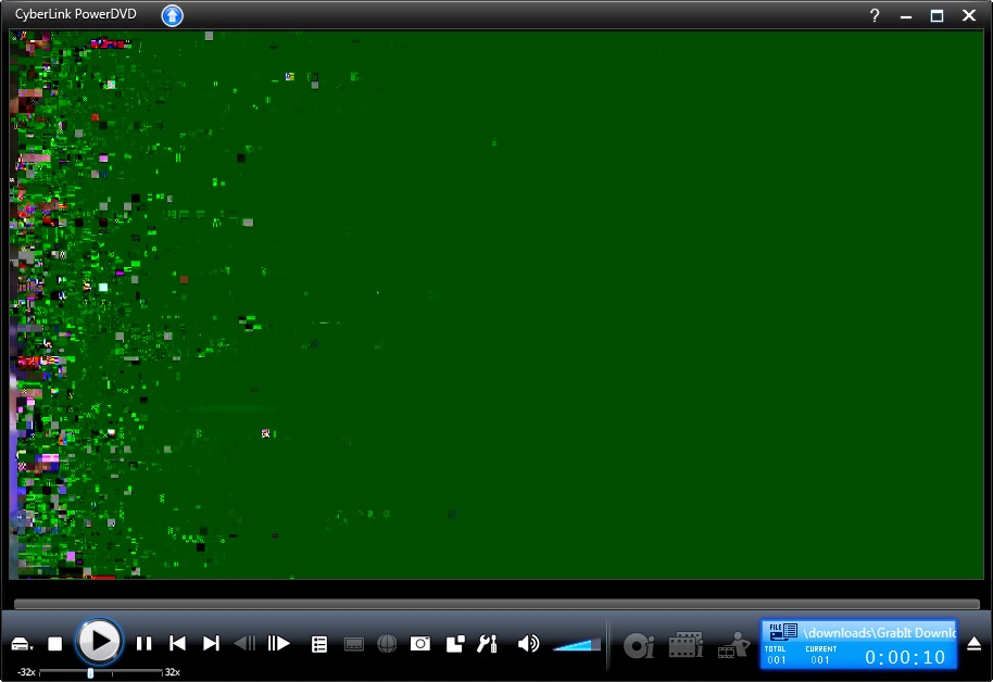 I've got a transport stream from an HDTV broadcast and there seems to be a problem with it. The file plays fine in VLC Media Player but in PowerDVD I just get a green screen with a bit of fluffy picture at the edge and a black screen on WMP. Not tried any others.