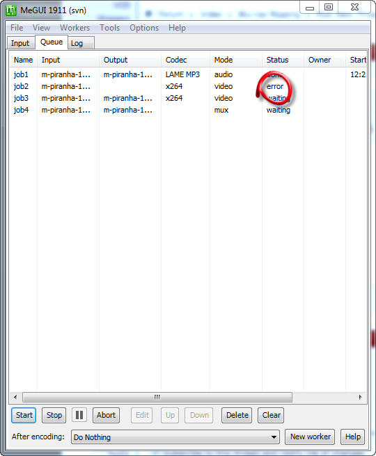 x264.exe error in Megui during encode