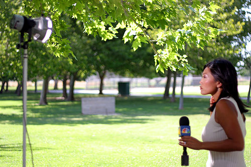 Purpose of the key is to light the subject of interest like this TV reporter. The idea is to increase contrast vs. the background. Pros use these lights even outside in sunlight.