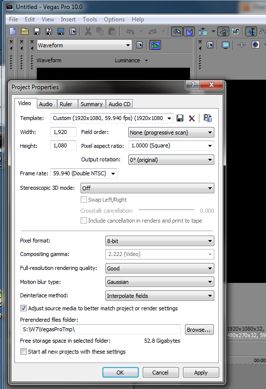 Currently mine is in a render. I know it does 1280x720p 59.94 fps. I'll check to see if it allows a 1920x1080p 59.94 fps custom template later this evening. No problem for Vegas 10 Pro.Recommends: Kiva.org - Loans that change lives.