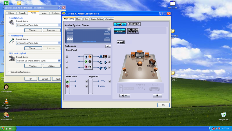 The film being played back is on VLC and is set to 5.1 audio which is correct as these speakers are 5.1, I have changed to settings in windows also to 5.1 instead of 'desktop stereo speakers'