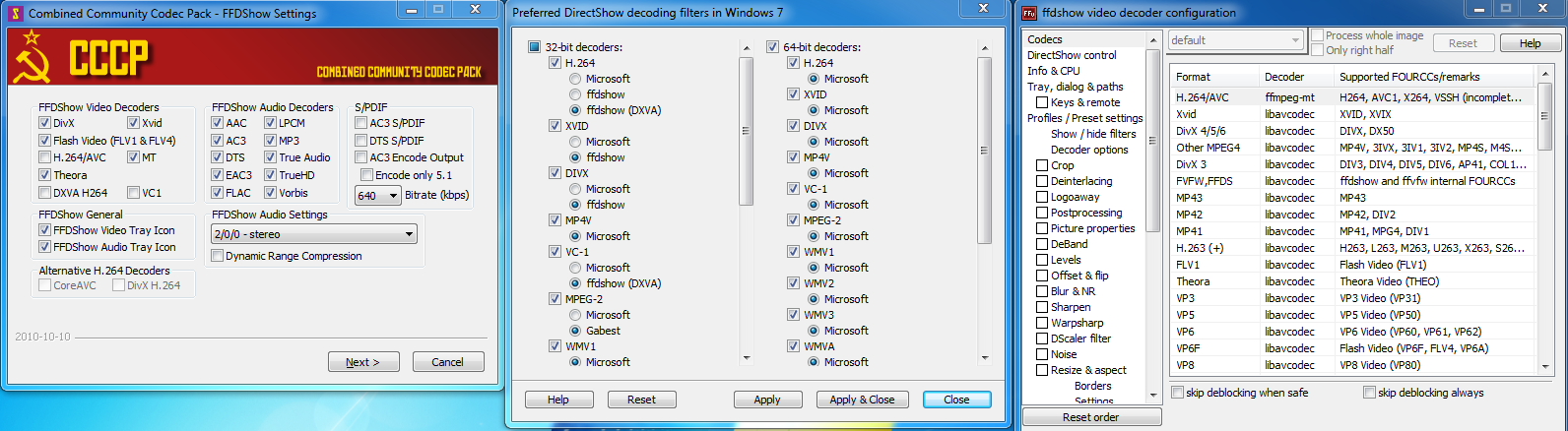 I've also reformatted so I barely have anything on the pc. I've installed, avisynth, MeGUI, & CCCP and still no luck (first pic is after reformat). Also did this since I saw this on digital digest (middle box, but do not recall doing before my little hiatus...)