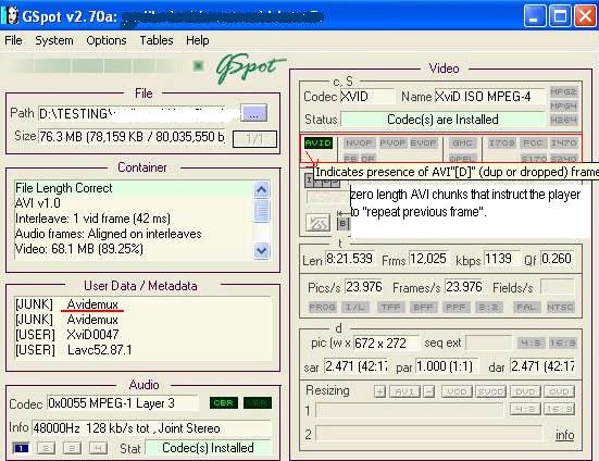 Thanks jagabo for your instant reply. I could trim away a portion at the beginning with smart copy. I wanted to see the structure of the file after effecting the cut in gspot. It only shows "AVID". When I move the cursor over it, a highlighted message appears. I don't understand what it means. Could I get some explanation please.