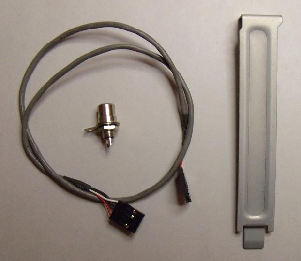 These are the parts needed: A blank PCI backplane insert. Yours may vary. A CD to MB audio cable. These aren't used for DVD drives, so there are a lot of them around. You can also use other connectors that have a 0.1" pin spacing. PC case to MB front panel connectors will also work if you have an old case. Last is a RCA phono jack. Most electronic parts stores should have this. Shielded wires aren't needed for this as the run is short and there is a ground wire within the cable. Otherwise with individual wires, twist the wires together. Since the signal is digital, it's mostly immune to RF interference.