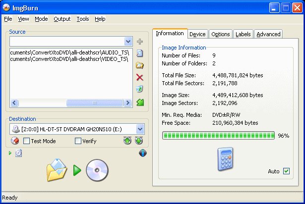 If you have made a DVD-Video burn the VIDEO_TS folder with imgburn, in Imgburn select Write files/folders to disc, click on the + sign and add the VIDEO_TS folder and burn: