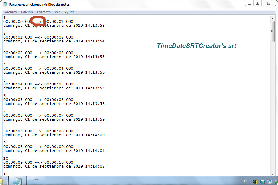 I've tried again the TimeDateSRTCreator, and there is a small difference in the srt files that may be the solution: