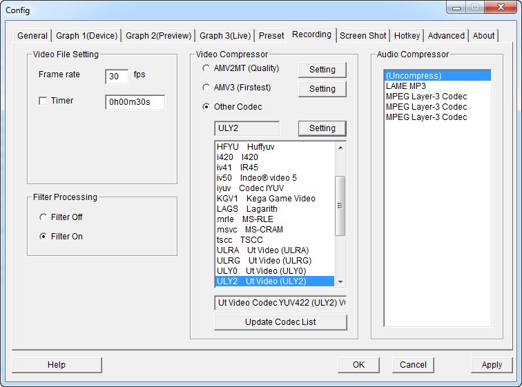 3. in Recording tab, have many codec, but the one you use is missing ( ULY2) ??? By the way,