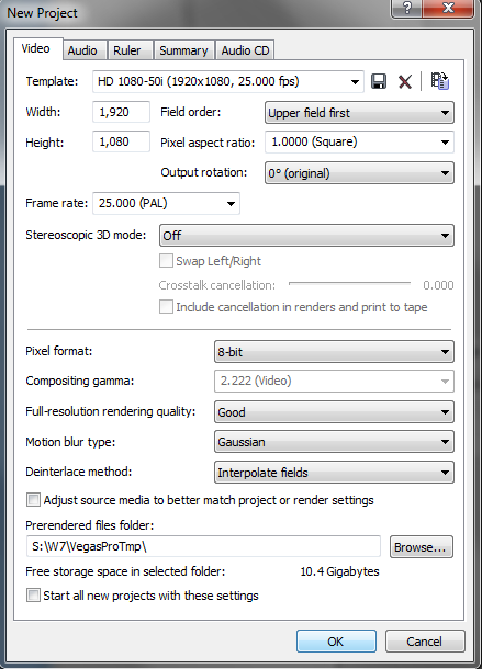 3. There's no standard for 25i AVCHD in the templates on Vegas Pro 10.0.