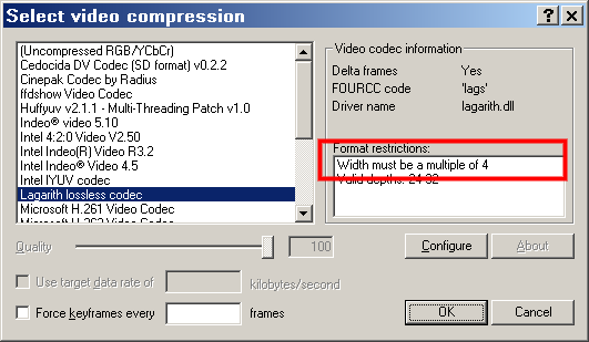 Interesting, what version of lagarith are you using jagabo ? I'm using the latest and it doesn't list any restrictions