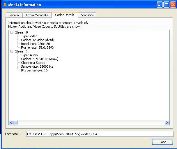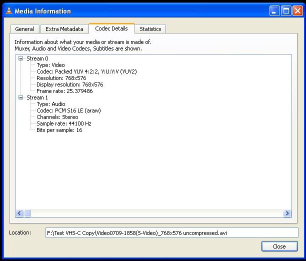 When I try to capture in AVI – uncompressed, the format result is 768x576 25fps as per screenshot below. All appears to be correct at this point.