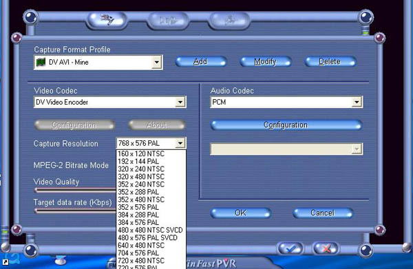 Does anyone have any ideas as to why the WinFast’s DV-AVI format is not as it should be ie PAL 720x576