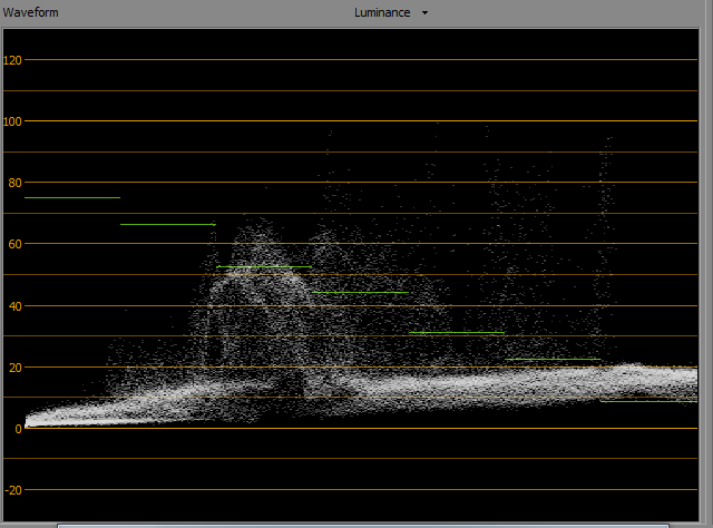 which results in waveform like this with gamma reduction applied to get the black more distributed.
