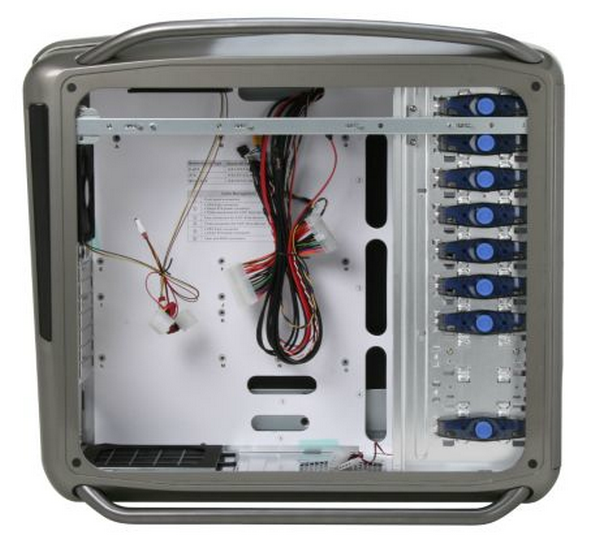 The interior of the Cooler Master Haf 912 is better than the Antec in some ways. It has openings that can be used to run PSU cables under the motherboard tray for neat cabling.(The Antec 300 doesn't have that feature.) The orientation of the HDD cages in the Haf 910 is nicer in some ways, but two different orientations on the drive cages can also make it somewhat more difficult to connect power to all the SATA drives. (The connections often all on one long cable.) SATA data cables with one right-angle are probably necessary if the hard drive cages are used in a different orientation from the optical drives so the cables won't be bent too sharply.