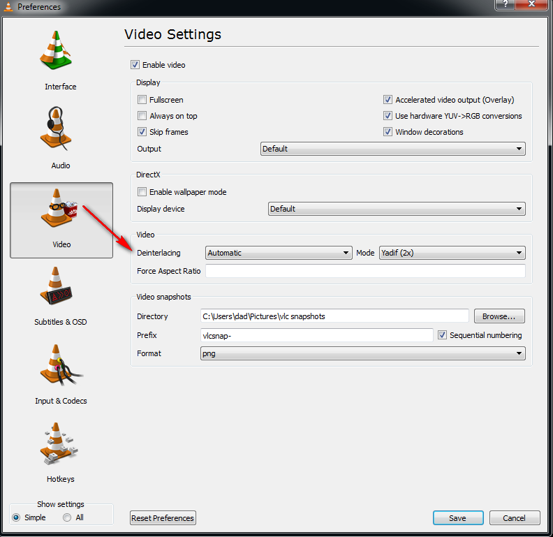 7. In the Windows version the Video tab (Show All Settigns) itself has the interlace options at the very bottom.
