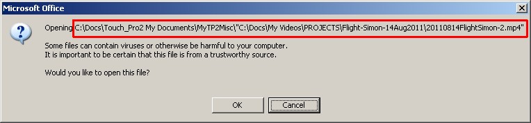 C:\Docs\Touch_Pro2 My Documents\MyTP2Misc\"C:\Docs\My Videos\PROJECTS\Flight-Simon-14Aug2011\20110814FlightSimon-2.mp4"