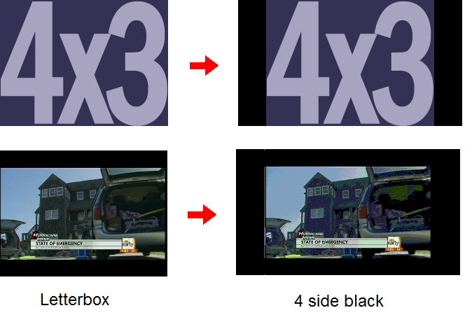 Four side black results when 4:3 letterbox is played inside a 16:9 frame.