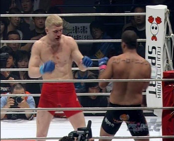 All source video of this type is supposed to be interlaced, But I think you refer to the motion of the blue glove on the fighter facing us *and jagged edges on motion of his upper arm), and to one hand of the fighter with his back to us. Fast motion is often blurred in video, especially on film. But we don't have the original .vob, so this is a guess, but those jaggies suggest that your ripper or other processor has the field order reversed.
