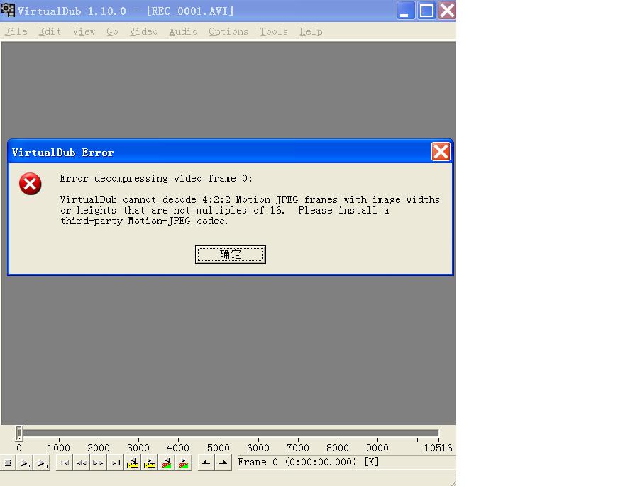when i use virtuldub to edit an avi file, the error as follow photo: