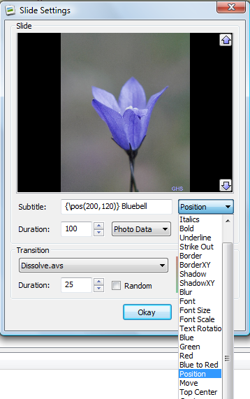 This generates a couple questions . . . In playing around with DVDSGUI I find that I want the caption more lower left (actually just lower would be enough) than the existing style tag. I used Position and trial-and-errored the numbers and "improved" the location.