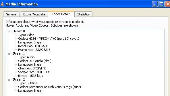 Video ....: 1280x536 (X264 @ 23.976fps)