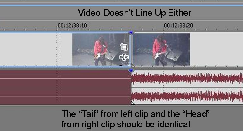 What I meant was that the two video thumbnails that come together don't seem to match perfectly. You're drilled down to the frame level and the two ends don't match. At the frame level there's not going to be much visible difference between frames, but you have quite a bit.
