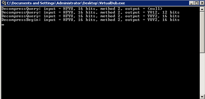 I don't get an error message opening your video in VirtualDub, but I get a garbled image. I don't know what jagabo used to work with your video in AviSynth, but my PC codecs don't work with your file (they play OK in VLC player). Jagabo and and some other members are codec experts here, they'll have the answer. Curious about that myself. I've always captured with huffyuv/YUY2 or uncompressed RGB.