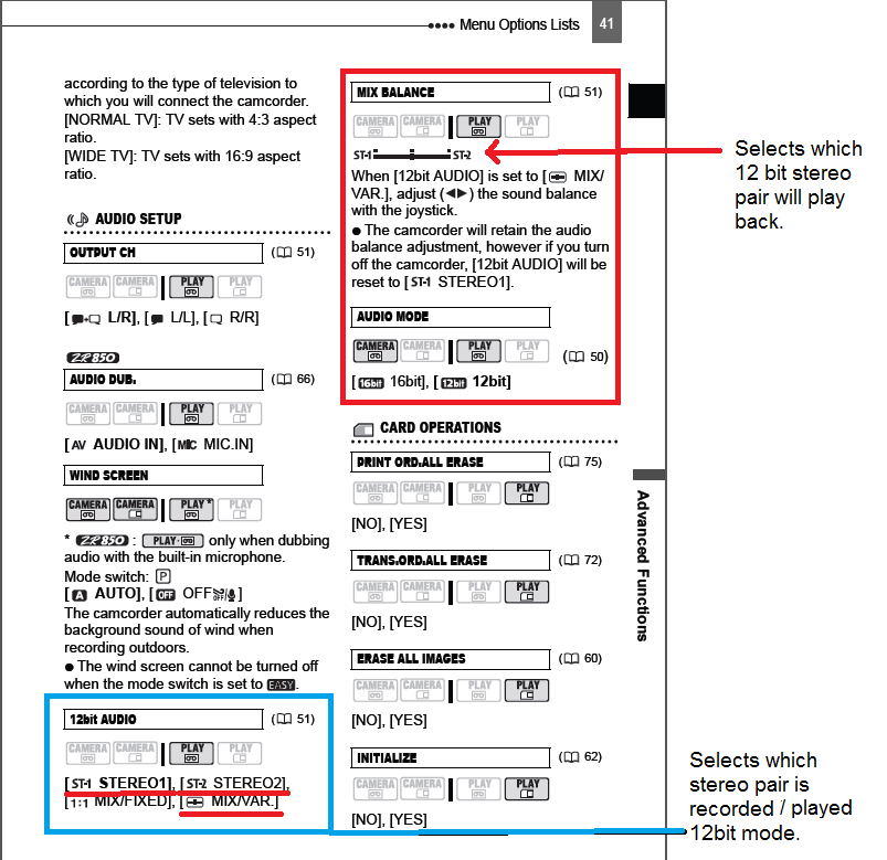 That's what I thought too but wasn't positive. Many years ago I did the same thing as the OP with my Canon MiniDV camera. I forget which software I was using but it too would not touch the 12 bit audio and I was forced to go analog to my DVD recorder with the footage. I now use Magix Movie Edit where I can load DV footage long with an extra audio, mute the DV audio and use the corrected audio(16 bit) audio(for example).