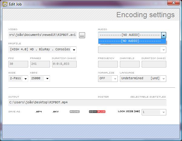 Hi, I am trying to encode avi to mp4, but when I open my avi video the audio don't appears as it should be. It just kept on saying [NO AUDIO].