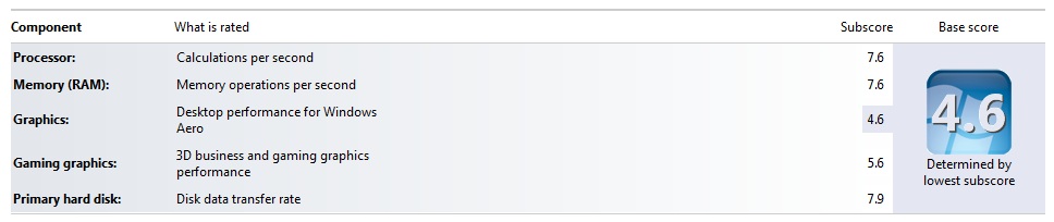 Right now your graphics is the weakest link followed by memory and CPU according to your WEI ratings. Is AHCI enabled?