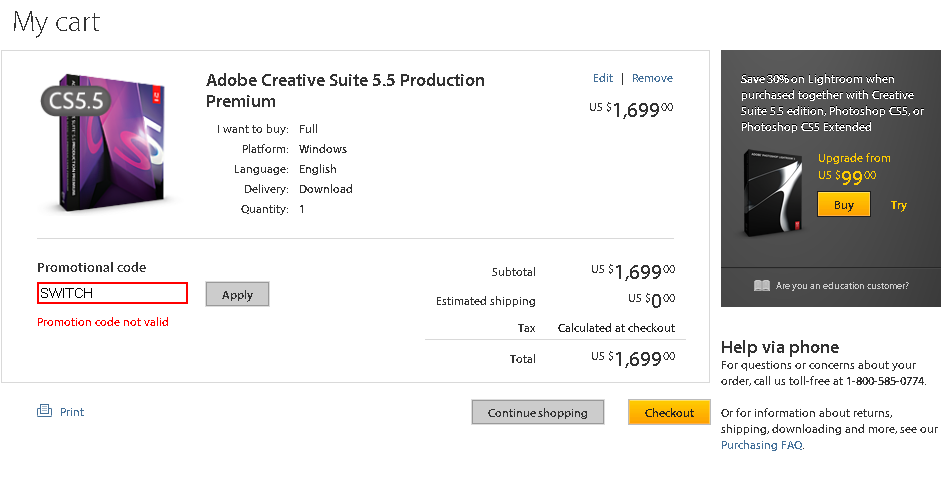 OK, thanks, and I looked at videoguys too. Meh, I need a deep discount to get me motivated and willing to subject my computer to Adobe. Thanks anyway.