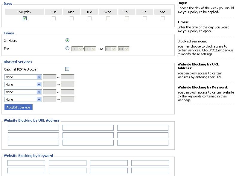 You can restrict access to sites and services like emule, and edonkey. You can also limit the band usage.