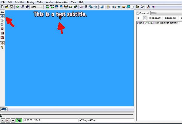 Or, you can do it manually by adding the pos command to the beginning of the subtitle line you want to position (notice the example command in the right side of the image, above, and experiment with the values).