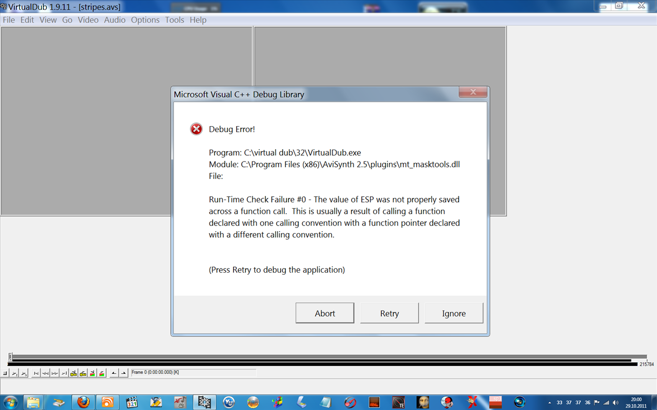 I noticed that if the files from the script are alone in the plugin folder the script loads ( its very slow by the way ) but soon as i put another ( any ) plugins in there like mt.dll or other the script is crashing my virtual dub or dub mod programs, something strange is going on.Last edited by mammo1789; 29th Oct 2011 at 15:41.