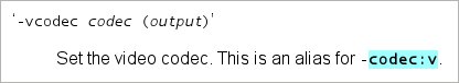 The search string above brings up the ffmpeg docs as the first hit. Looking at the cached page (which has search terms highlighted) shows this: