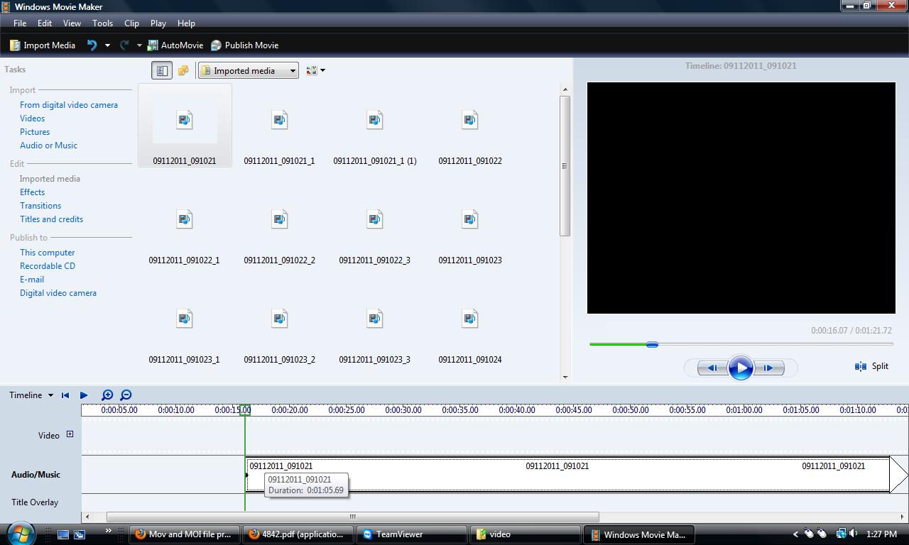 Hello all, I took a video with a JVC Emerio Camcorder Model GZ-MG157U intending to post the video on youtube but did not use the PAUSE button in between so I ended up with like 25 separate video clips, upon transferring the video clips to my pc, they show as 2 file types .MOV and .MOI, the clips all play well in Windows Media Player but now I am trying to merge all 25 clips in sequence as just one video for youtube. I tried importing the clips into Windows Movie Maker for this purpose but the clips do not show I am guessing without the MOI file, the MOI files cannot import giving this error message :