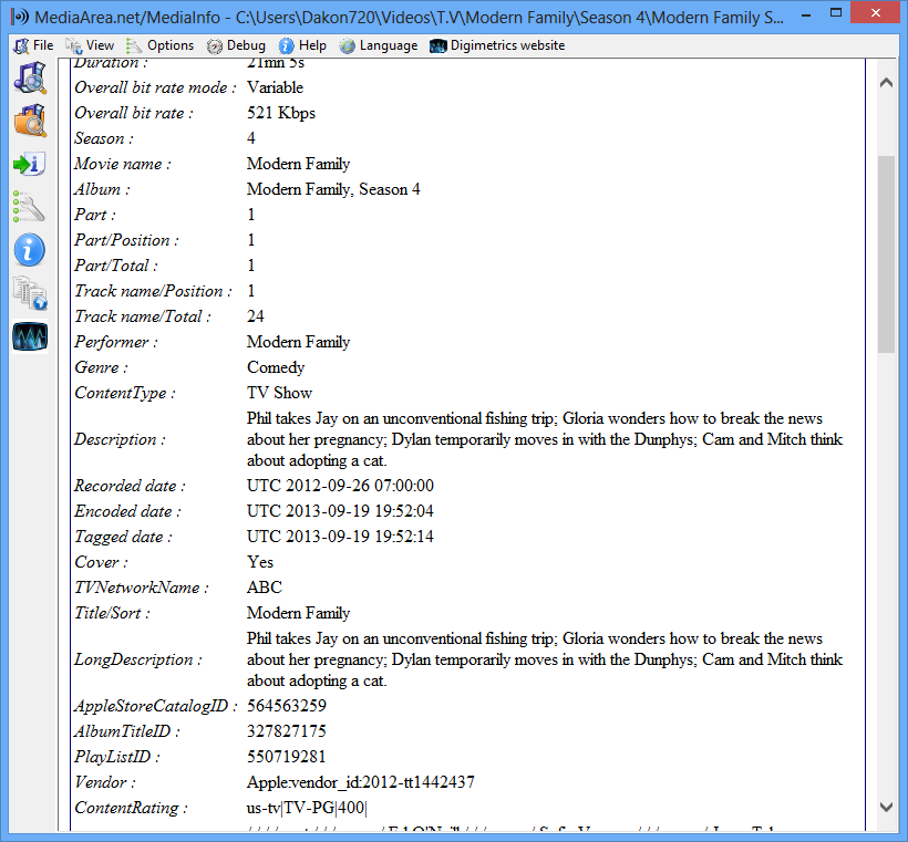 1: h264/AVC, English, 1080p24 /1.001 (16:9)