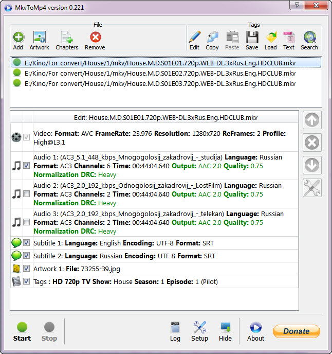 Anyway, I managed to dig through my computer and find an old log of what I used to have mkvtomp4 do to my mp4s, can someone explain to me what the settings should be in mkvtomp4 if I want to do everything the way I used to? (Sorry if this is an idiotic question, I just cannot remember what I had set up).