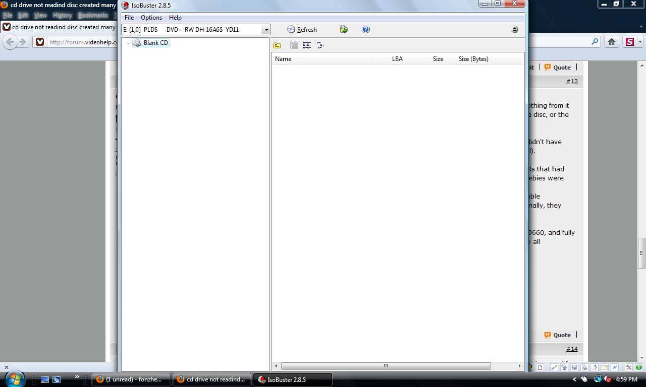 If the latter, right click it the icon and do a sector view, as well as a "perform a surface scan". If you get nothing from it then, I would say that either something else on your PC is interfering with ISOBuster's interaction with the disc, or the disc is so corrupted that it's showing NO media left.