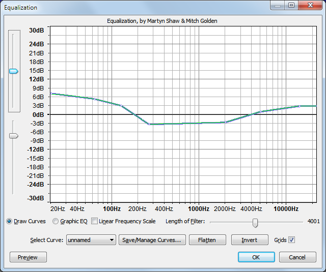 and adjust the bass boost to your liking. You can use the Analyze -> Plot Spectrum tool to compare spectrums.Last edited by jagabo; 5th Dec 2011 at 18:32.