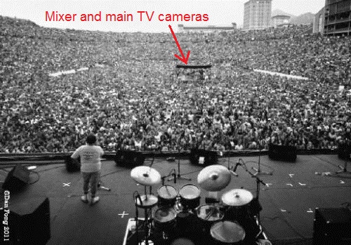 I know this. I m just looking for decent audio which will be clear and audible when i view the videos on my computer. I am okay with background noise to an extent and i will make sure that i find a good place . Btw, the concert wont be as intense as in the image.Also camcorder mics aren't the best way to record. You need to tap the mixer board or set up your own mics and mixer. If you must use a camcorder mic, location is important (e.g centered and away from the bands speakers). Ideal is the 30% angle rule to the bands front L and R main speakers. Best clue to the optimal audio location is near their mixer board.