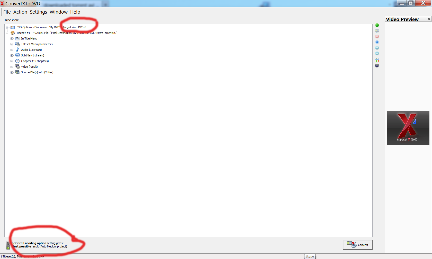 that convert x to dvd is confused with ( but in that case it will say unknown error or source file, or stop the encoding process, and not producing file that is bigger than the dvd5 template )