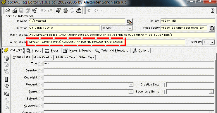 i marked in red the info i want to edit. This is what dvix player shows as the name of the audio track so i want to substitute all that for the name of the language but this program wont let me do that. Any ideas please?
