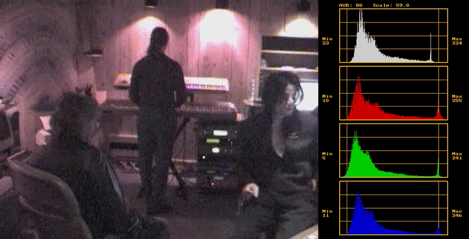Yes you're right. Thank you very much for explaining the reasons of your settings and tweaks. But I wonder why the histograms in RGB have high intensity around 235 whereas it was around 220 in the simple histogram (for smoothlevels). And some values in the RGB histogram even get higher than 235... I don't understand this difference between the two histograms. And could you remind me why DVD should be between 16 and 235?But I would still lower the high contrast a bit (and I would lower gamma, too, if I'd made it as far as this shot). I'd do so because leaving the brights as-is makes those room lights look like spotlights, and Michael's facial highlights and hands look too "hot".