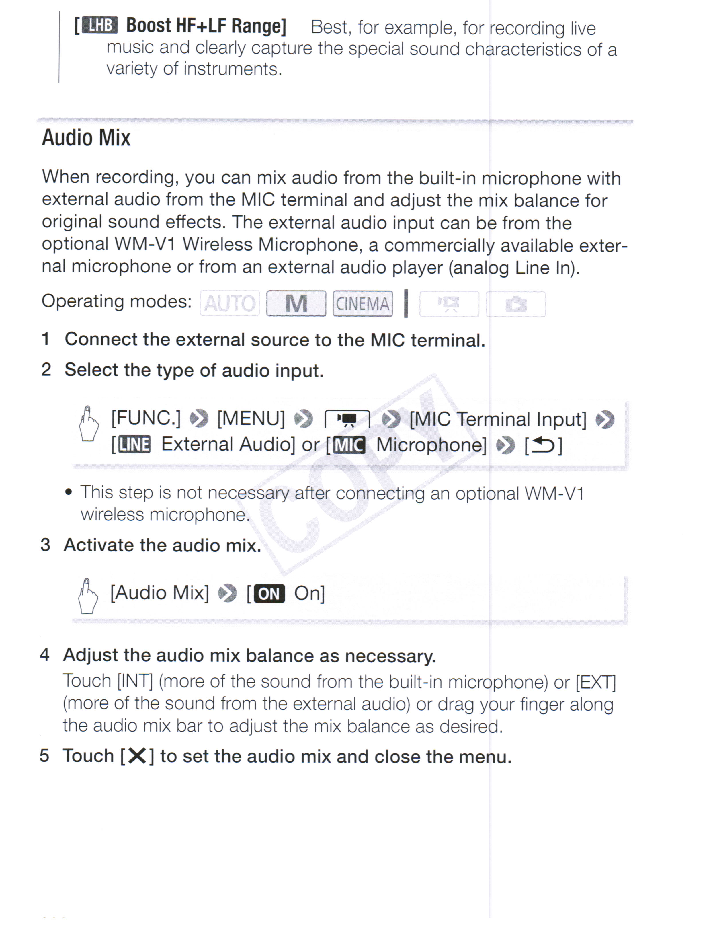 Yes I see there is manual audio control which means you set it at that, no audio mix, then plug in the Beachtek. I use an Azden SGM-1X shotgun (requires battery, which means no need to worry about phantom); I believe middle between the extremes of shotgun microphone costs and capabilities.