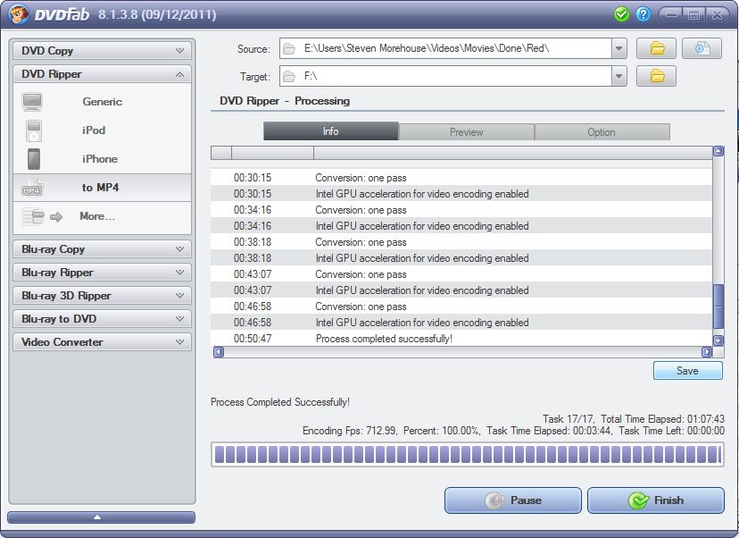 22. Oh, oddly enough - I have run into another problem now. With DVDFab installed on a drive other than my primary drive... I now can't complete a large encode. Small (8 - 10 minutes) have finished fine, but every single attempt at a full movie has had it stall part way through the process. I've uninstalled and reinstalled several times on several drives (both SSD and HDD) and it always is the case. Put it back on c: drive and its fine. I have NOT yet tried other software programs to see if THIS particular issue is a DVDFab issue.