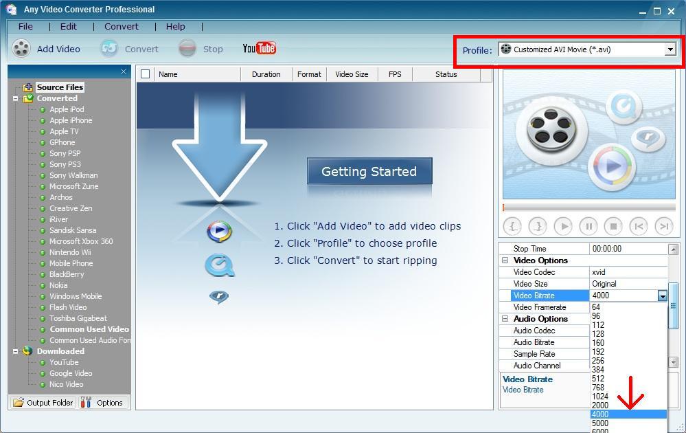 This is from AVC set to Xvid/Bitrate set to 4000Kb/s and MP3 audio @128Kb/s