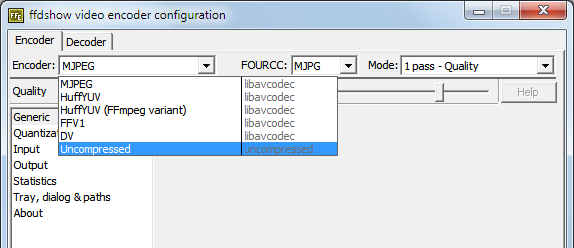 VDub and ffdshow: Encoder option empty for mpeg4 (Win 7)