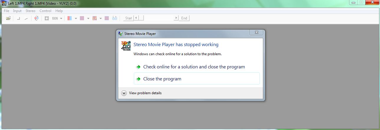 I have tried a few different programs, "stereo movie player" being one of them, but just cannot get both videos to load. I don't think it was meant for what i'm trying to do !