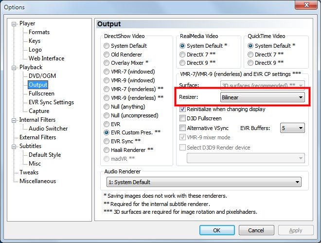 You can also try potplayer, a new very good player with lots of settings. -